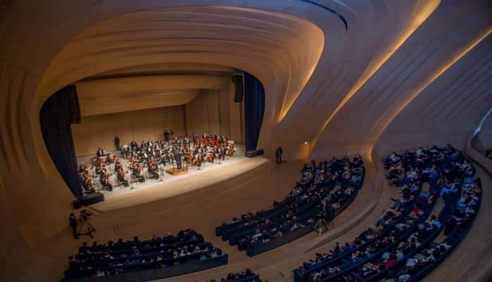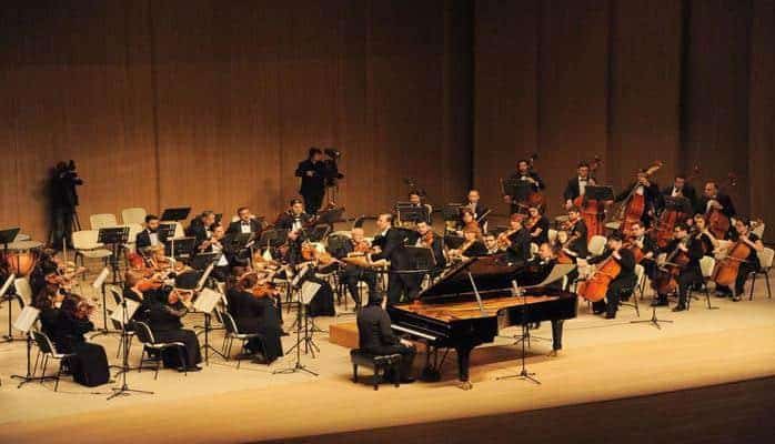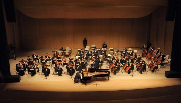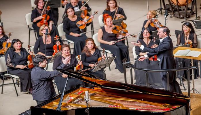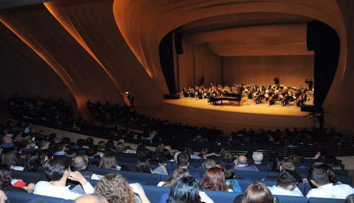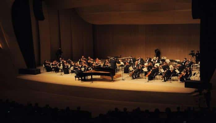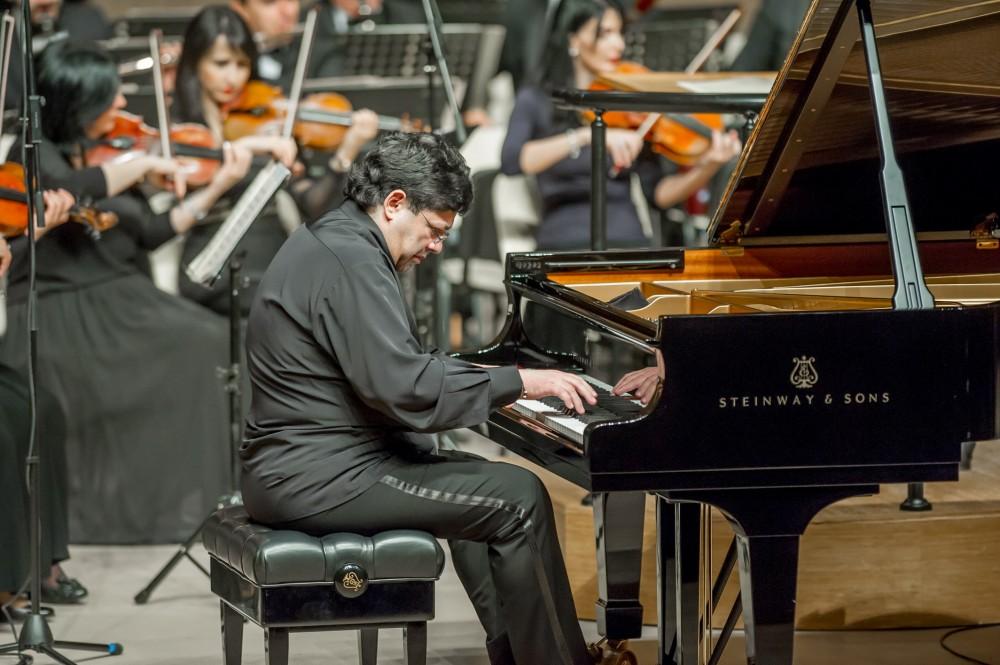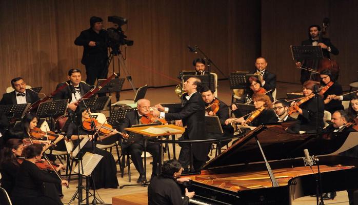 На концерте под руководством дирижера Альвиезе Казелатти в исполнении Азербайджанского государственного симфонического оркестра имени Узеира Гаджибейли прозвучала музыка. Солист - народный артист Азербайджана пианист Мурад Адыгезалзаде.