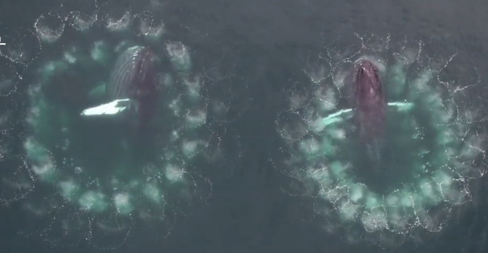 Во всех подробностях красивые спирали, которые появляются в воде от мощного дыхания китов, можно рассмотреть только с дрона – поэтому ученые вели съемку именно оттуда. Но помимо кадров с высоты, камеры были закреплены и на самих китах (с помощью присосок, оснащенных помимо объективов специальными датчиками), и это уже дало им возможность рассмотреть процесс охоты «от первого лица».