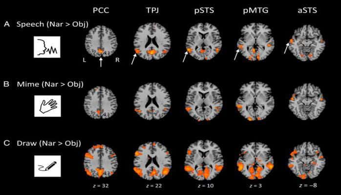 В итоге удалось установить, что в придумывании рассказов, не зависимо от формы повествования, наибольшую роль играют височно-теменной узел (TPJ), отвечающий за сбор информации из таламуса, лимбической, зрительной и слуховой систем, а также за ее обработку, верхняя височная борозда (STS), которая анализирует речь, распознает лица и участвует в социальном восприятии и задняя поясная кора (PCC), ответственная за запоминание и обучение. Как утверждают авторы исследования, полученные данные помогут лучше понять работу ЦНС и улучшить диагностику и лечение психиатрических заболеваний и болезней, связанных с нарушением памяти и восприятия.