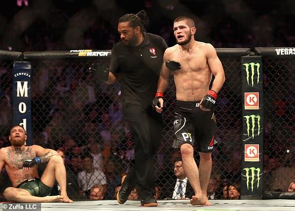 Сразу после объявления завершения боя Нурмагомедов выскочил за пределы октагона и устроил потасовку в зале с болельщиками Макгрегора.