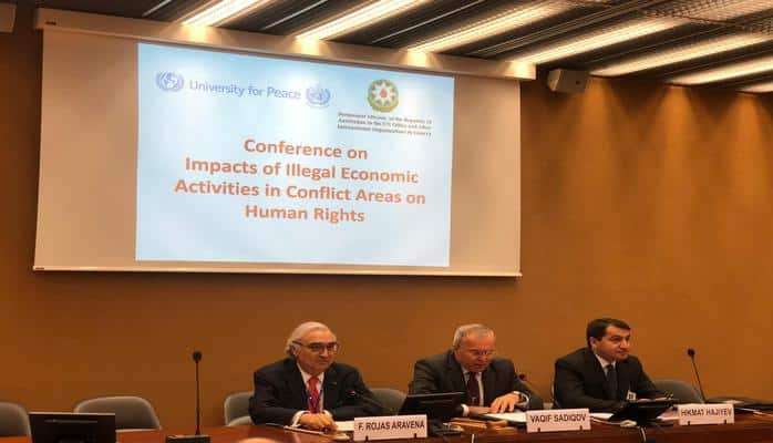 Об этом во вторник во время международной конференции "Влияние незаконной деятельности в зонах конфликта на права человека", проведенной в Женеве при организационной поддержке представительств Азербайджана в ООН и других международных организациях, а также Университета мира ООН, сказал заведующий отделом по вопросам внешней политики Администрации Президента Азербайджана Хикмет Гаджиев, сообщает Trend со ссылкой на МИД Азербайджана.