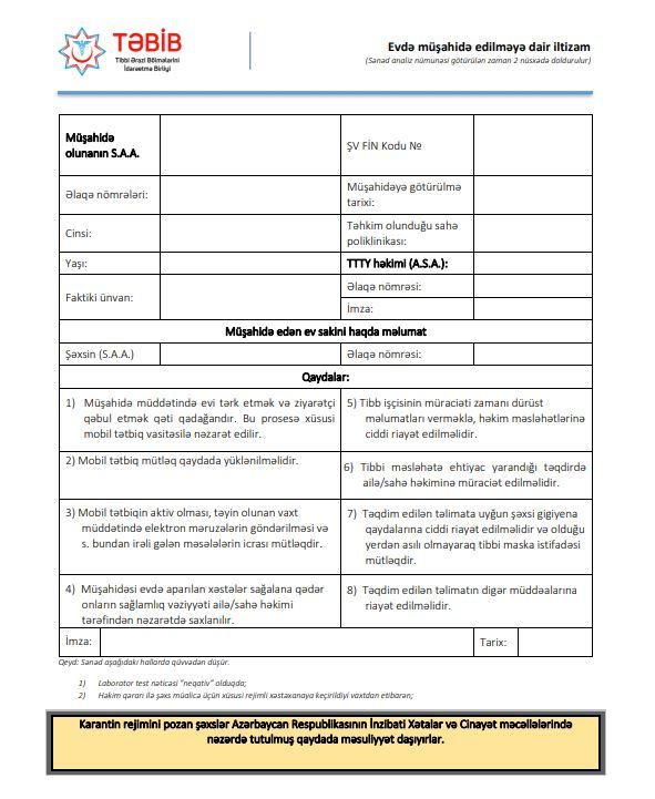 Kак сообщает Ens.az со ссылкой на Report, документ под названием "Расписка о наблюдении дома" подписывается с момента сдачи анализа.