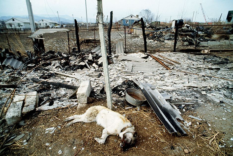 — Я выглядываю в круглое окошко (иллюминатор) и буквально отшатываюсь от неправдоподобно страшной картины. На желтой траве предгорья, где в тени еще дотаивают серые лепешки снега, лежат мертвые люди, — описывал свой визит на место трагедии российский журналист Юрий Романов. — Вся эта громадная площадь до близкого горизонта усеяна трупами женщин, стариков, старух, мальчиков и девочек всех возрастов, от грудного младенца до подростка.