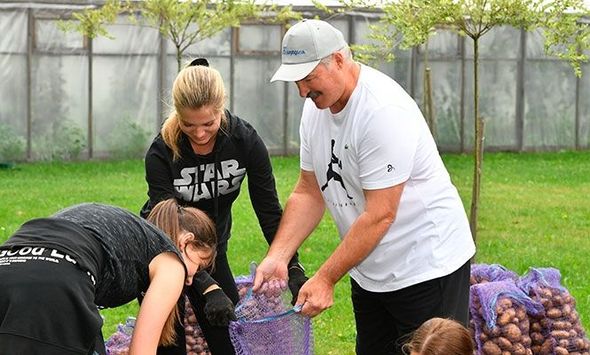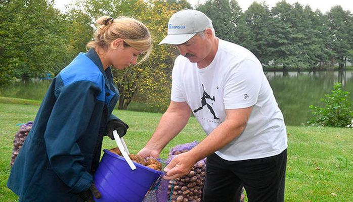 Белорусский лидер Александр Лукашенко собрал на своем приусадебном участке урожай картофеля и арбузов.