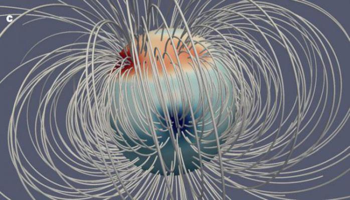 Для сравнения, магнитное поле Земли диполярно, то есть потоки возникают на Южном полюсе и возвращаются в Северный. Также есть недипольная часть, которая равномерно распределена по двум полушариям.