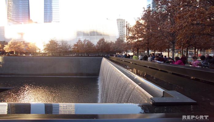 Памятник американо-израильского архитектора Майкла Арада, строительство которого было завершено в 2008 году, представляет собой два огромных бассейна, расположенных на месте фундаментов башен-близнецов и повторяют их контуры. По стенам фундаментов низвергаются водопады — символ скорби и нескончаемого потока слез по погибшим. По краям на мраморных плитах выгравированы бронзой имена всех жертв этих терактов.