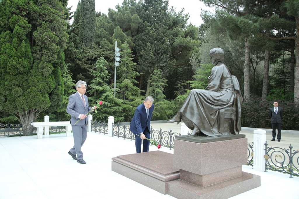 Сегодня гости посетили Аллею почетного захоронения и почтили память общенационального лидера Гейдара Алиева, возложили на его могилу венки и букеты цветов. Также была почтена память известного ученого-офтальмолога, академика Зарифы ханум Алиевой, на ее могилу были возложены букеты цветов.