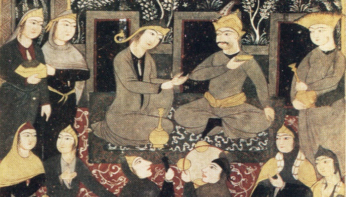 Иллюстрация к заключительной части “Искендернаме”, к рассказу о семи мудрецах. 1631-1632 гг.