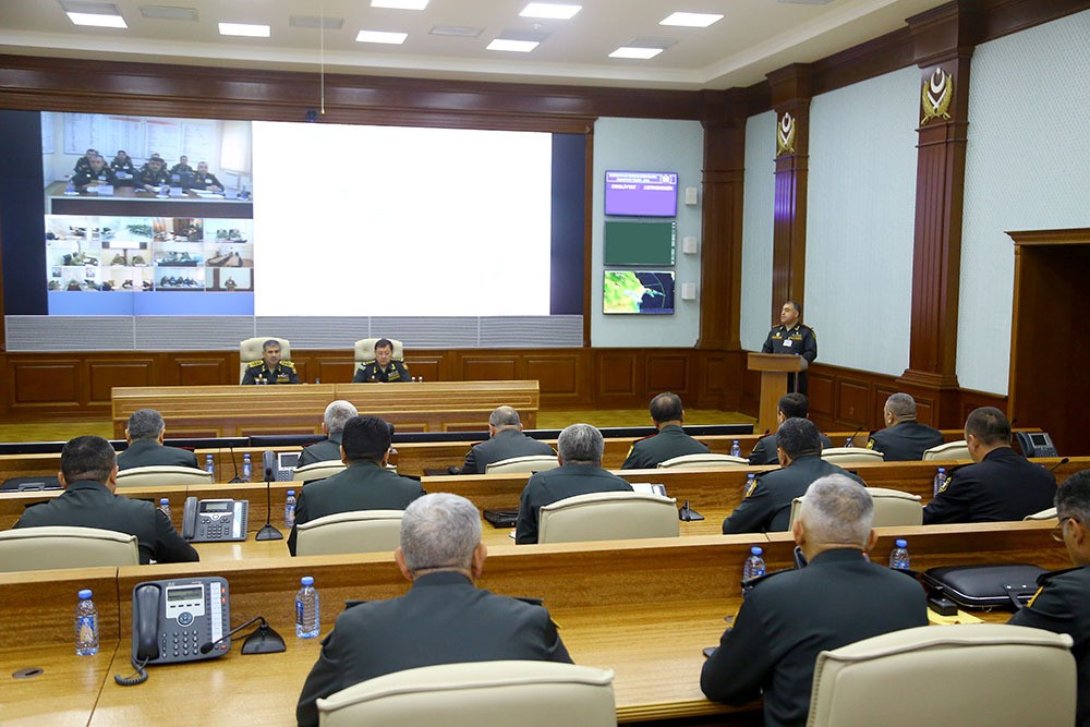 В ходе совещания посредством прямой видеосвязи, установленной с основным и запасным пунктами управления, а также командными пунктами видов войск, были представлены брифинги о текущем состоянии войск и заслушаны доклады по оперативной обстановке, разведывательной деятельности, боевым возможностям авиации и ракетно-артиллерийских войск.