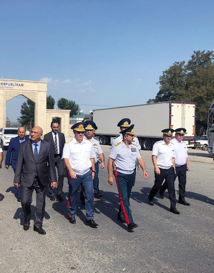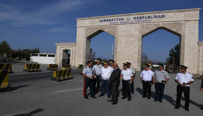 Начальник Государственной пограничной службы Азербайджана, генерал-полковник Эльчин Гулиев и председатель Государственного таможенного комитета Азербайджана, генерал-лейтенант таможенной службы Сафар Мехтиев проверили состояние пропуска лиц и транспортных средств на таможенном контрольно-пропускном пункте «Самур», расположенном на госгранице Азербайджана с Россией.