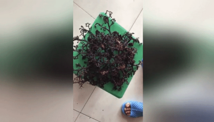 Причудливое морское существо с сотней движущихся щупалец сбило с толку местных жителей после того, как его вынесло на пляж в провинции Кьензянг (Южный Вьетнам).