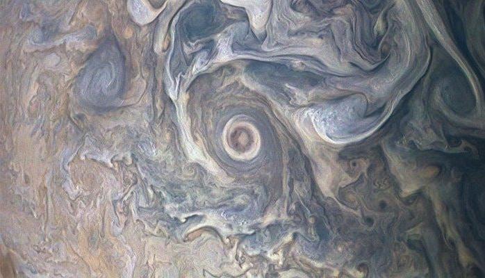 Кадр был сделан с помощью космического корабля Juno, который находился в 11 350 километрах от верхних слоев облаков.