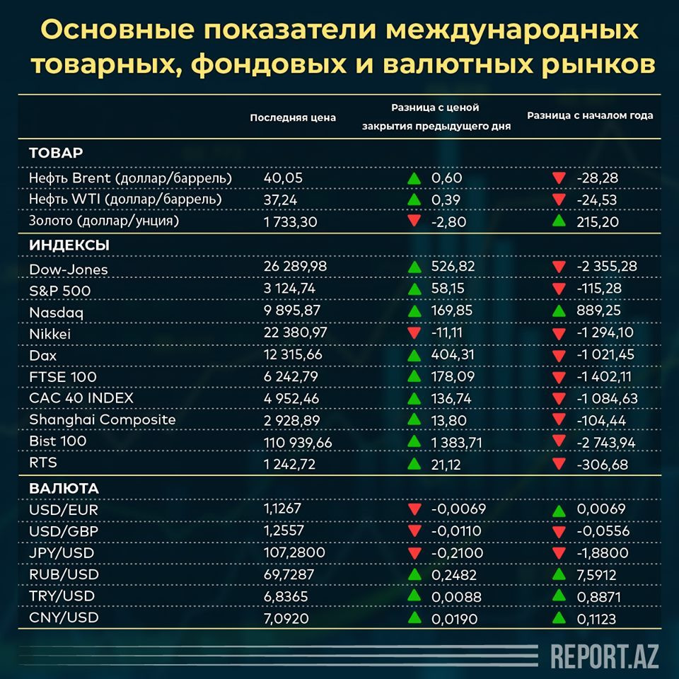 Основные показатели международных товарных, фондовых и валютных рынков (17.06.2020)