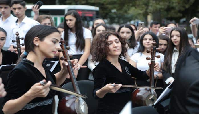 18 сентября перед Бакинской музыкальной академией имени Узеира Гаджибейли торжественно отметили день рождения основателя азербайджанской композиторской школы Узеира Гаджибейли и День национальной музыки.