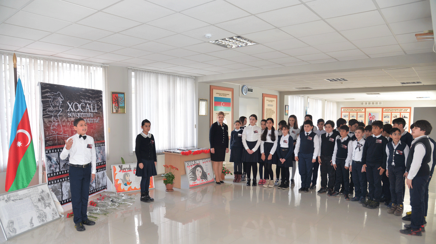 В соответствии с Планом мероприятий по проведению 28-й годовщины Ходжалинского геноцида, урок был посвящен информированию подрастающего поколения о Ходжалинском геноциде, ставшем самым трагическим событием ХХ века, и начался с минуты молчания в знак почтения светлой памяти жертв Ходжалы и шехидов, отдавших жизни за независимость Азербайджана.