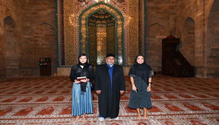 Первый вице-президент Азербайджана Мехрибан Алиева и ее дочь Лейла Алиева в субботу посетили шамахинскую Джума-мечеть.
