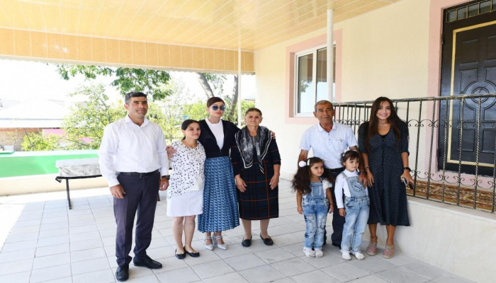 Первый вице-президент Азербайджана Мехрибан Алиева в субботу посмотрела дом жителя села Муганлы Шамахинского района Замига Сафарова, построенный на месте дома, пришедшего в аварийное состояние в результате землетрясения.