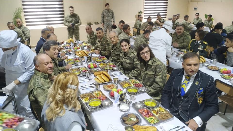 Полад Бюльбюльоглу встретился с солдатами и офицерами, ознакомился с условиями прохождения военной службы, пообедал с ними, очень тепло пообщался. Вместе с юбиляром были его дети Муртуза и Лейла, ректор Азербайджанской национальной консерватории Сиявуш Керими, директор ASAN Radio Эмин Мусави, руководитель благотворительного фонда " Həyat", телеведущий Гаджи Нуран Гусейнов, другие гости из Баку.