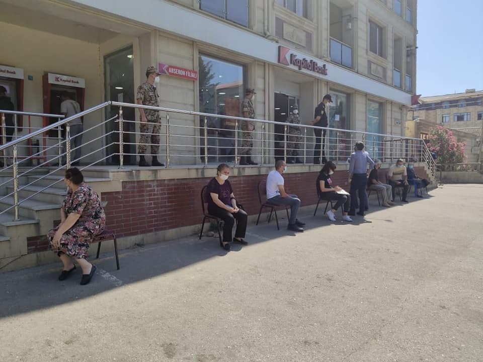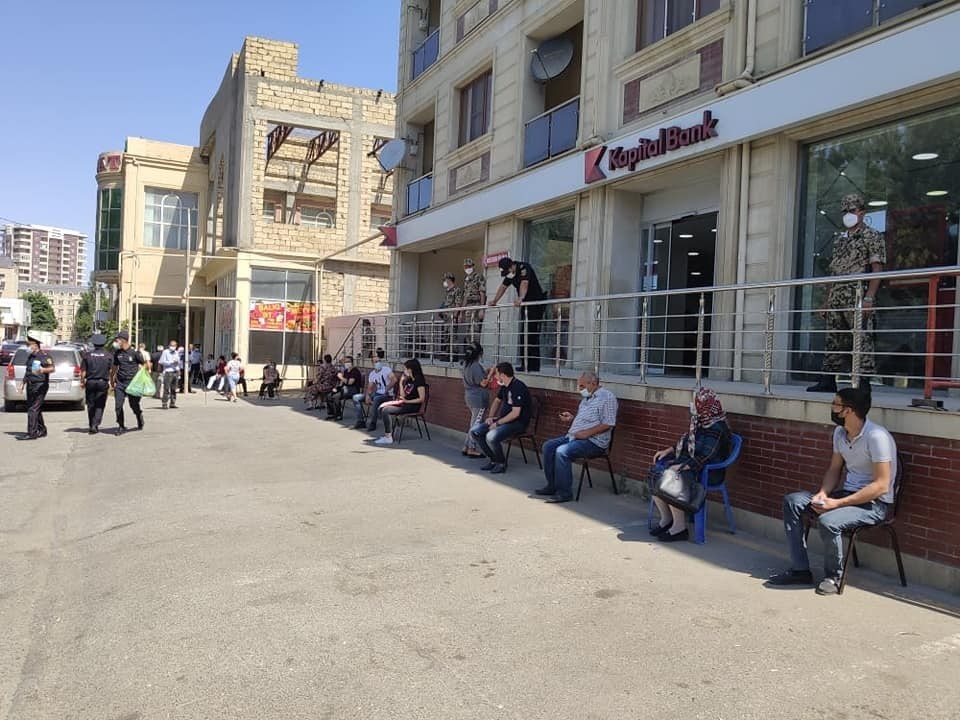 Kак сообщает Ens.az со ссылкой на Report, сотрудники полиции осуществляют особый контроль над районом, учитывая возможную плотность у банков в связи с выплатой пенсий и социальных пособий, а также принимая необходимые меры для защиты социальной дистанции.
