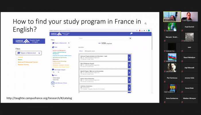 Посольство Франции в Азербайджане и агентство «Campus France» провели онлайн-семинар для студентов Бакинского государственного университета (БГУ).