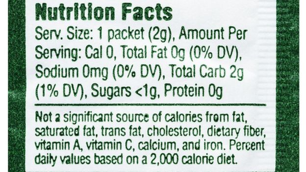 По закону, на этикетке продукта питания должно быть четко обозначено, содержатся ли в нем низкокалорийные подсластители, чтобы люди знали, что именно они покупают.
