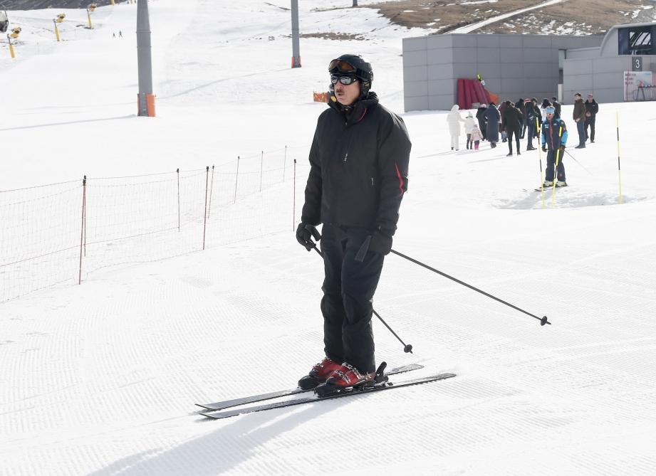Прибыв в Туристический центр «Шахдаг», глава государства совершил здесь лыжную прогулку.