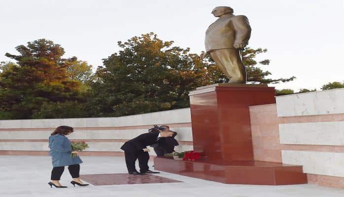 Как сообщает Report, Президент Ильхам Алиев и первая леди Мехрибан Алиева посетили памятник общенациональному лидеру Гейдару Алиеву в центре города Гах, возложили к нему цветы.