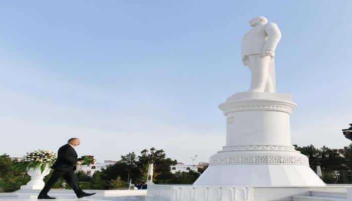 Глава государства посетил памятник общенациональному лидеру Гейдару Алиеву, возведенный в центре города, возложил цветы к его подножию.