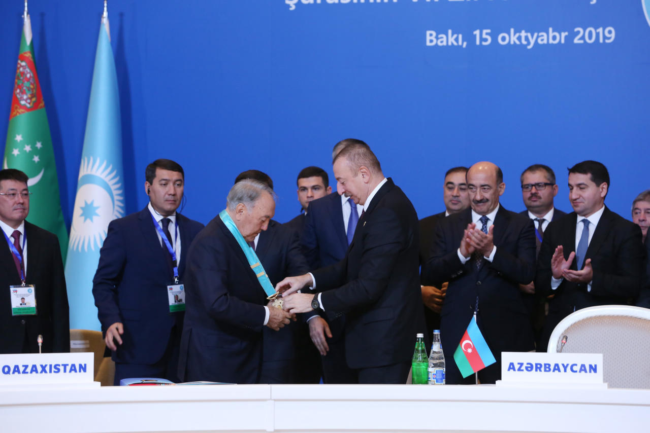 Президент Ильхам Алиев вручил Нурсултану Назарбаеву «Высший орден тюркского мира»