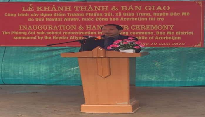 В официальной церемонии открытия приняли участие посол Азербайджана во Вьетнаме Анар Иманов, заместитель председателя Народного комитета провинции Хазянг Тран Дак Гуй (Tran Duc Quy), а также официальные лица провинции, ученическо-преподавательский состав школы, другие представители поселковой общины.
