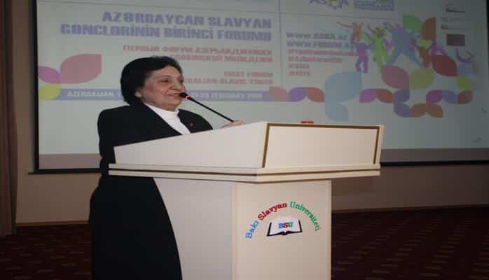 Выступившая на мероприятии ректор БСУ, профессор Нурлана Алиева сказала, что ААСМ за короткое время добилась заметных успехов, собрала вокруг себя большое количество молодых представителей Азербайджана и славянских стран. Ректор отметила, что в нашем обществе возросла роль молодежи, созданы широкие возможности для ее участия в различных областях жизни. Рассказав о заботе Президента Азербайджанской Республики о молодежи, она подробно проинформировала о проведенной за последнее время работе по повышению стипендий молодежи, обеспечению их работой. Н.Алиева довела до внимания, что воспитание молодежи в патриотическом духе, повышению их морально-нравственных качеств являются важными вопросами сегодняшнего дня. Отметив, что государственная политика Азербайджана всегда поддерживается на международной арене, ректор оценила проводимый ААСМ форум как показатель молодежной политики нашего государства.