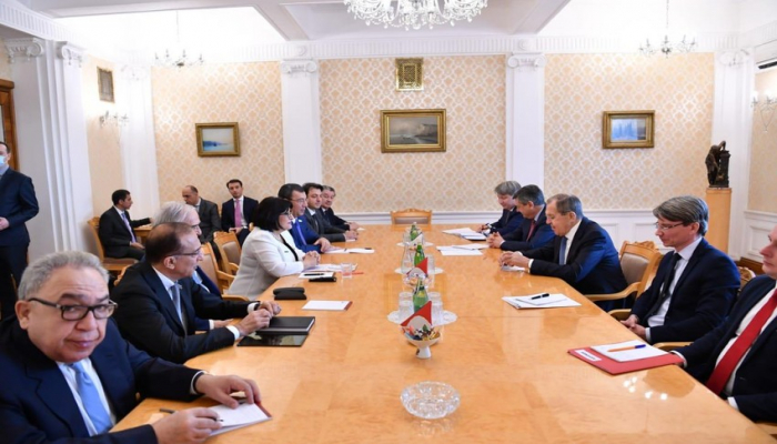 Началась встреча парламентской делегации во главе с председателем Милли Меджлиса Сахибой Гафаровой с министром иностранных дел Российской Федерации Сергеем Лавровым.