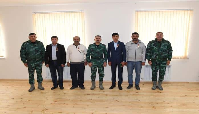 Начальник ГПС лично вручил медали "За заслуги в сфере военного сотрудничества" местным жителям Анару Дуньямалыеву, Сафарали Абышеву, Гусейну Шахвердиеву и Зауру Юсифову, отличившимся при выполнении строительных работ на погранично-боевых пунктах, выразил благодарность за работу на госгранице вместе с пограничниками.