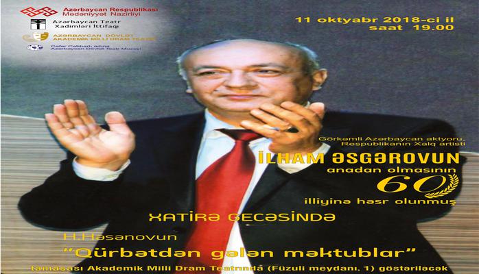 Также будет продемонстрирован посвященный памяти Ильхама Аскерова спектакль "Письма из чужбины" ("Qürbətdən gələn məktublar").