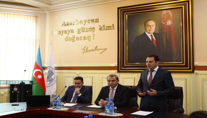 Затем генеральный директор коммуникационной и консалтинговой компании «Alibayov» Вели Алибеков выступил с презентацией «Стратегия и тактика работы по связям с общественностью в вузах».