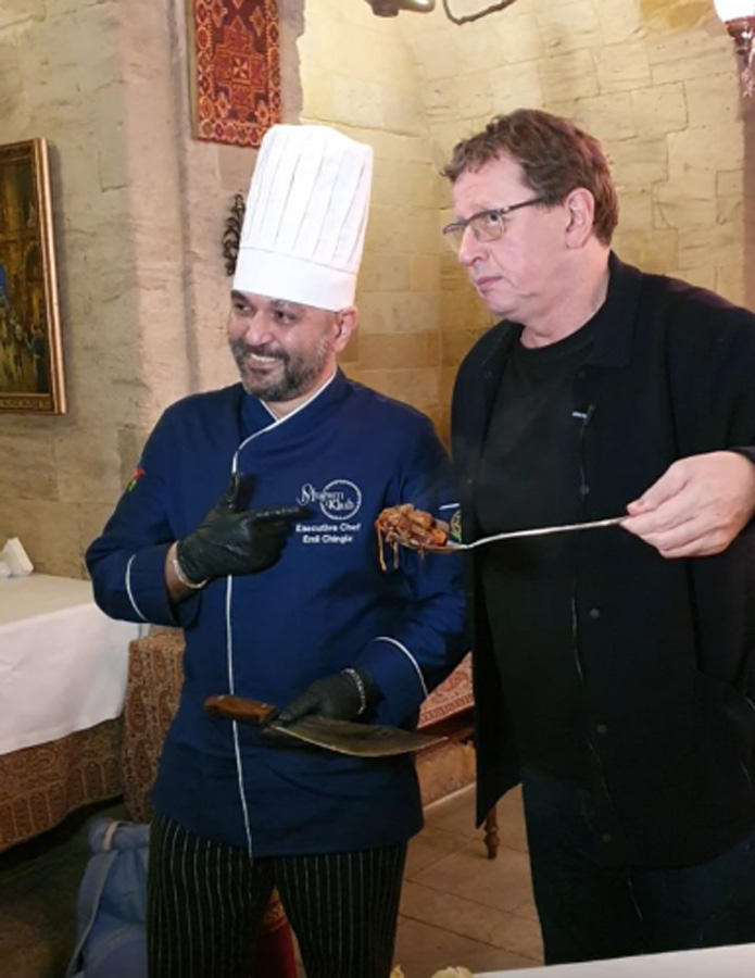 Судя по размещенным фотографиям и видеороликам, визит Михаила Ширвиндта в Азербайджан вновь связан со сьемками очередного выпуска программы "Съедобное-несъедобное".