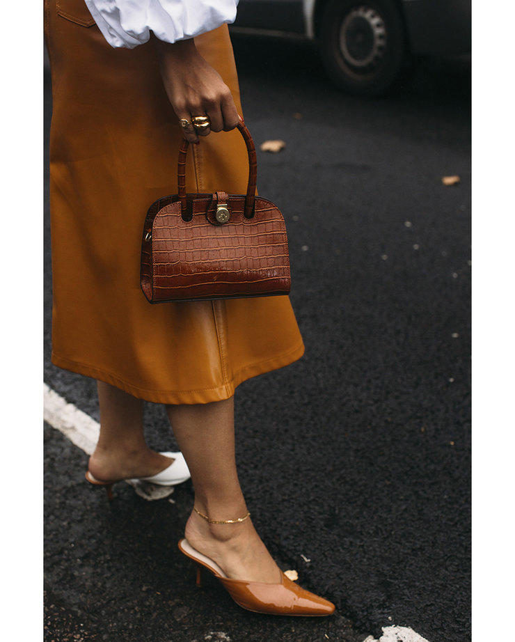 Этот тренд подходит всем и с легкостью добавит элегантности в ваш образ. Ищите "крокодиловые" сумки с твердым каркасом у Bottega Veneta, а более классические формы - у Max Mara и Chloé. Модели нейтральных цветов подойдут буквально ко всему: от тренча до шубы-"чебурашки", а яркая сумка будет отлично контрастировать с монохромным образом.