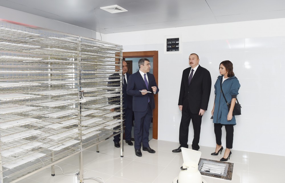 Президент Ильхам Алиев и первая леди Мехрибан Алиева были проинформированы о продолжающихся на предприятии исследованиях в области создания искусственного корма.