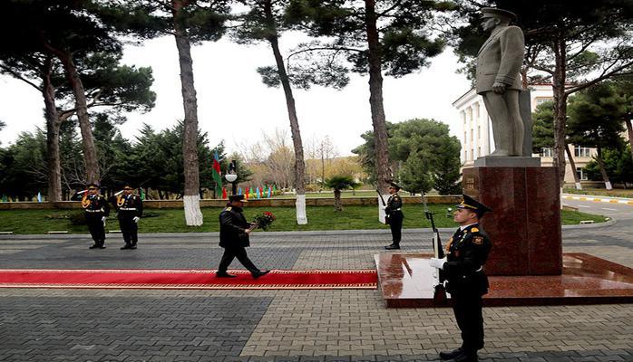 Как передает Report, cначала руководящий состав Министерства Обороны возложили цветы к памятнику общенациональному лидеру Гейдару Алиеву, воздвигнутому на территории училища, и почтили память Великого Вождя.