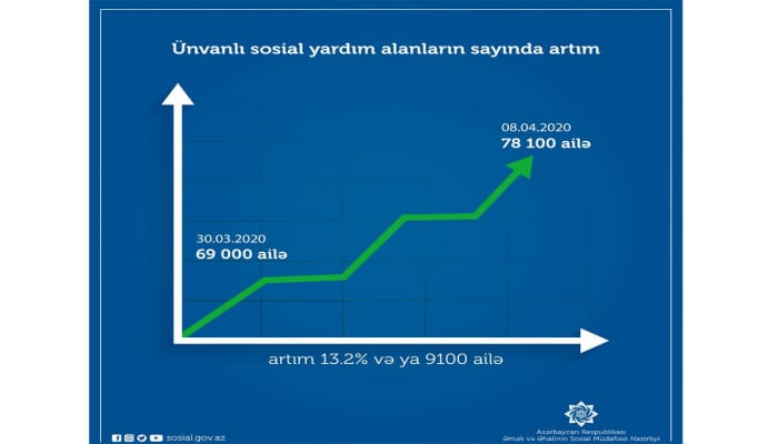 За последние 10 дней число семей, получающих адресную государственную социальную помощь в Азербайджане, увеличилось на 13,2 процента – на 9 100 семей, сообщили в среду Trend в отделе по связям с общественностью и коммуникациям министерства труда и социальной защиты населения.