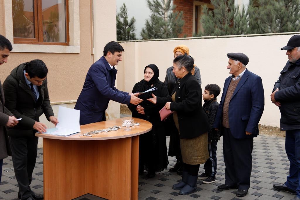 В рамках программы по обеспечению жильем семей шехидов и лиц, ставших инвалидами защищая территориальную целостность, независимость и конституционный строй страны, министерством труда и социальной защиты населения семьям шехидов и инвалидам Карабахской войны были переданы 10 новых частных домов в поселке Гобу Абшеронского района.