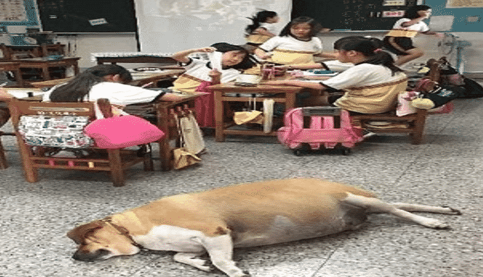 Восемь лет назад ученики школы на Тайване увидели на улице дворового щеночка и подобрали его. Забирать его было некому, поэтому ученики уговорили руководство школы устроить его охранником. После долгих уговоров пришлось всё-таки согласиться, передает «Лайф».