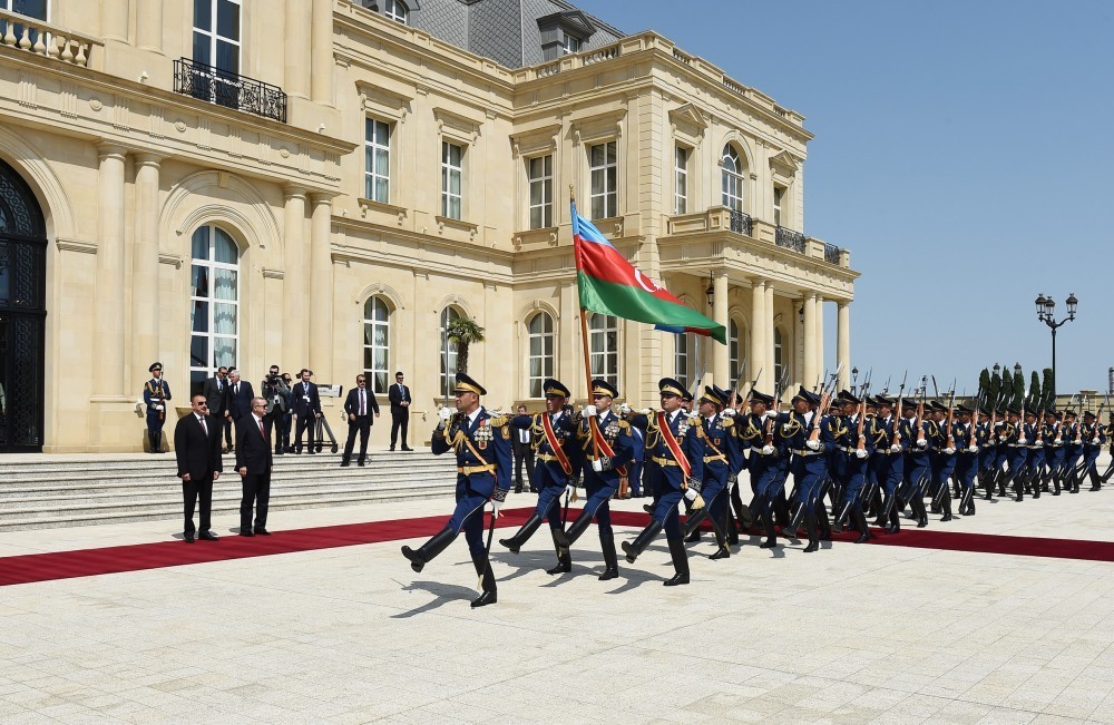 Президент Ильхам Алиев и президент Реджеп Тайип Эрдоган обошли строй почетного караула.