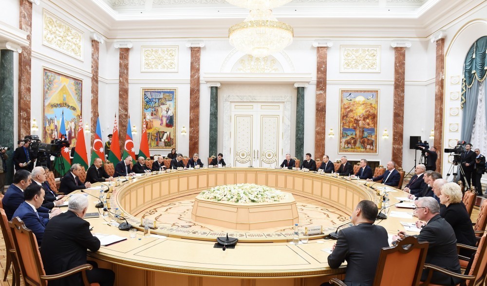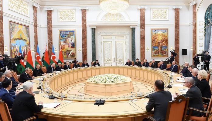 по завершении встречи один на один состоялась встреча президента Азербайджанской Республики Ильхама Алиева и президента Республики Беларусь Александра Лукашенко в расширенном составе с участием делегаций.