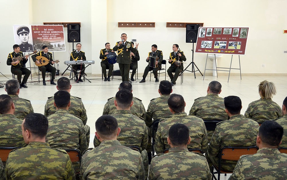 Согласно плану мероприятий, утвержденному министром обороны, в N-ской воинской части состоялось мероприятие, посвященное 110-летию со дня рождения дважды Героя Советского Союза, генерал-майора танковых войск Ази Асланова.