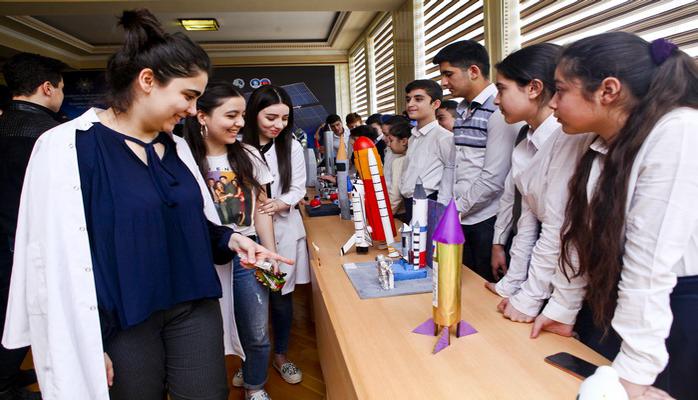 На мероприятии были представлены 100 моделей космических аппаратов и космической одежды, изготовленных участниками конкурса «Инженер будущего», проведенный среди бакинских школьников, а также фотовыставка астрономов-любителей.