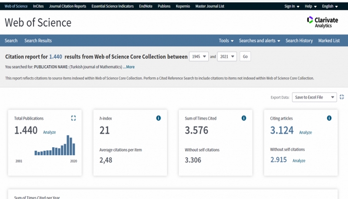 Отметим, что журнал «Turkish Journal of Mathematics» входит в самый влиятельный индекс SCIE платформы научных данных Web of Science («Clarivate Analytics») (импакт-фактор: 0,658).