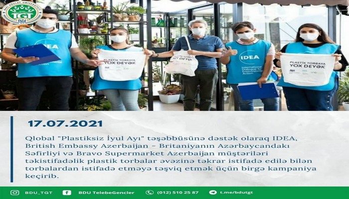 IDEA и посольство Великобритании в Азербайджане в поддержку глобальной инициативы «Июль без пластика» провели совместную кампанию для побуждения клиентов использовать многоразовые пакеты вместо одноразовых пластиковых пакетов.
