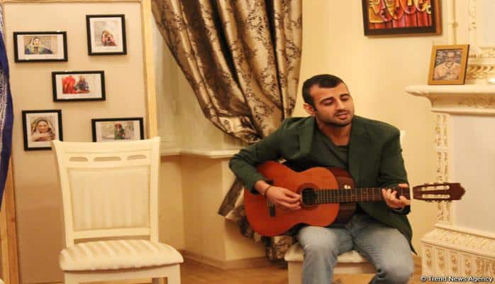 В музыкальной части вечера выступил азербайджанский исполнитель, участник французской версии музыкального телешоу "The Voice" Араз Гумбатлы, который вначале представил слушателям азербайджанскую народную песню "Сары гялин", исполнив в своей манере на гитаре.