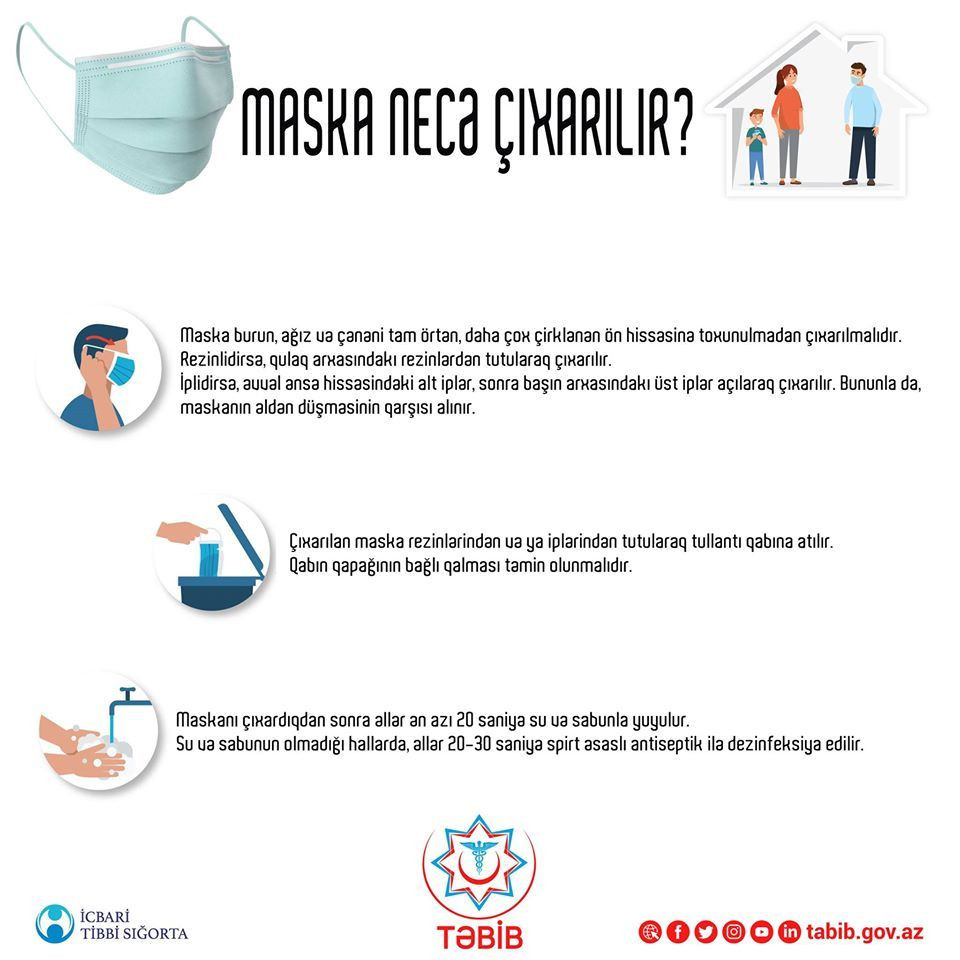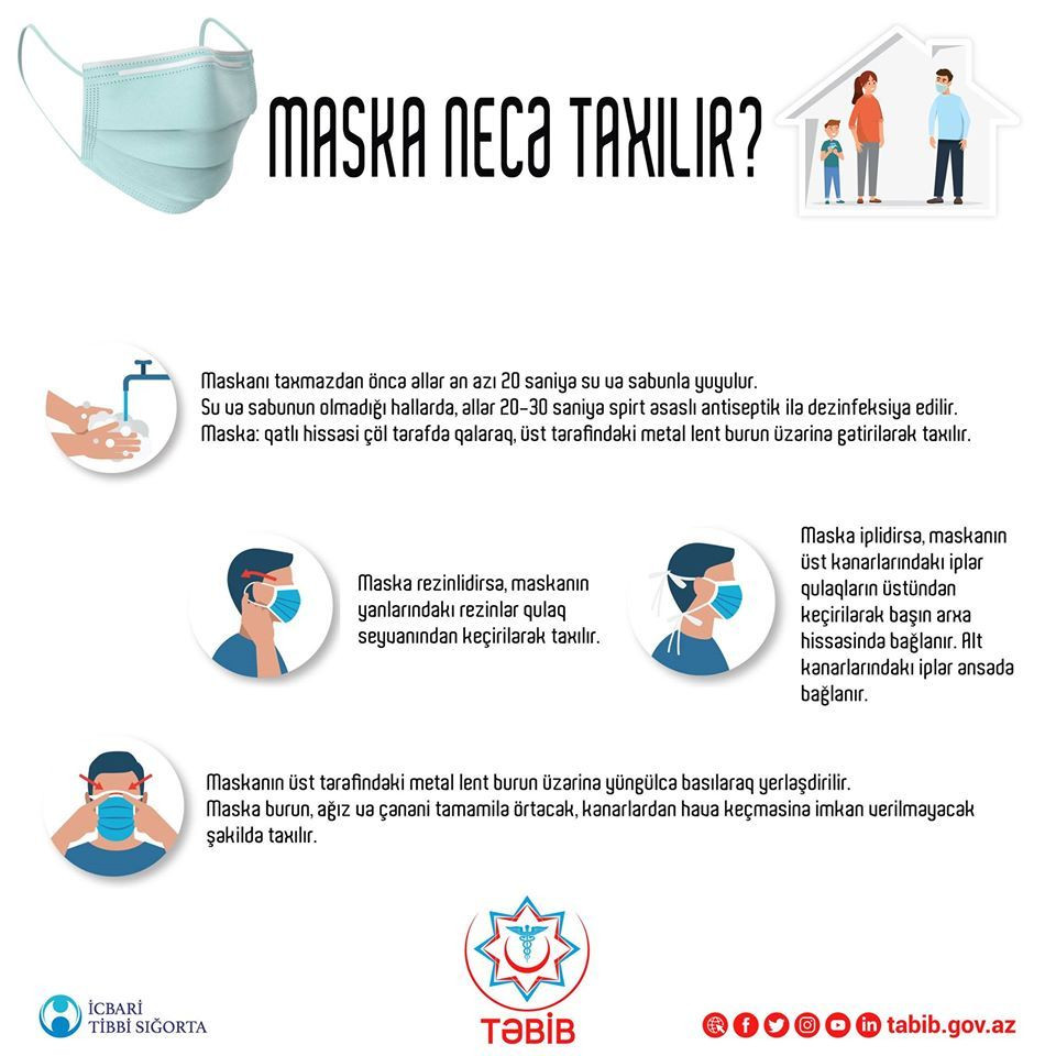 По информации Report, TƏBİB призвал граждан тщательно мыть руки (не менее 20 секунд) перед тем, как надеть маску.